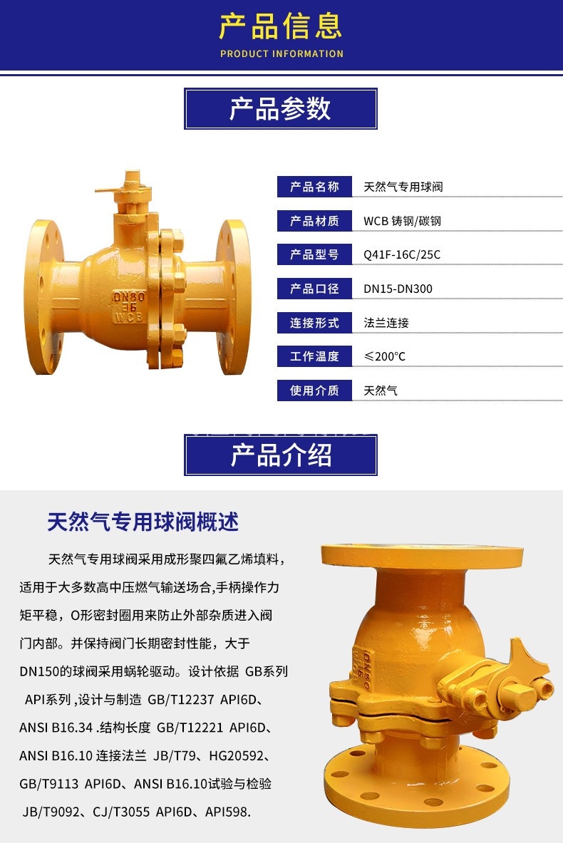 Q41F-16C 天燃气专用法兰球阀DN25 40 50 80 100