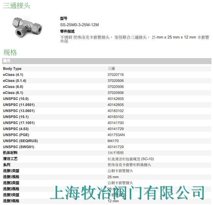 世伟洛克SS-25M0-3-25M-12M卡套三通接头