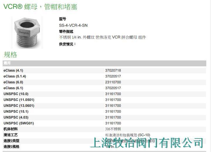 世伟洛克SS-4-VCR-4-SN拼合螺母组件