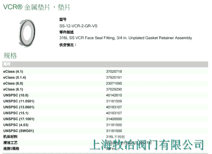 世伟洛克SS-12-VCR-2-GR-VS垫片