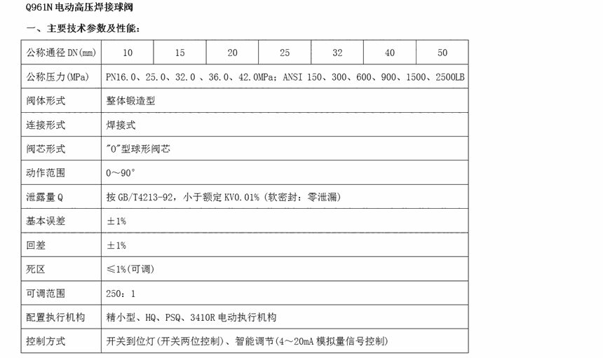 Q961N电动高压焊接球阀是由锻钢高压阀体及电子式角行程电动执行器组成。电动执行器采用一体式结构,输入220V电源即可直接进行开关量调节,亦可内置伺服模块,输入控制信号(4~20mADC或1~5VDC)及单相电源即可控制运转。主要零部件经过专业厂家锻制,克服了铸钢阀门潜在的缺陷,在大工作压力下能够保持其结构的抗压均匀性。适用介质:水、油、气等非腐蚀性介质和酸碱腐蚀性介质。广泛应用于化工、石油、天然气、冶金、等行业及含硫化氢介质、杂质多、腐蚀严重的天然气长输管线。