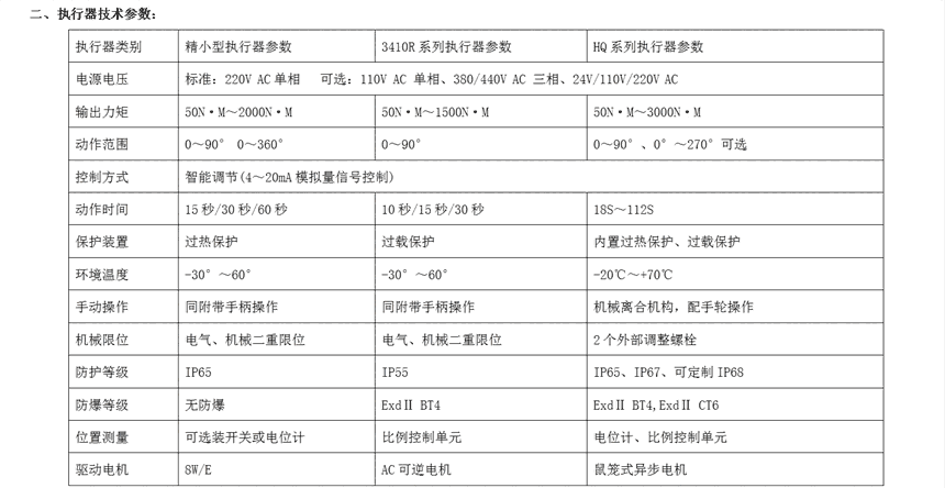 (2)执行器参数:电源电压、控制方式、控制信号(4-20mA,1-5V)、作用方式(电-开式,电-关式)