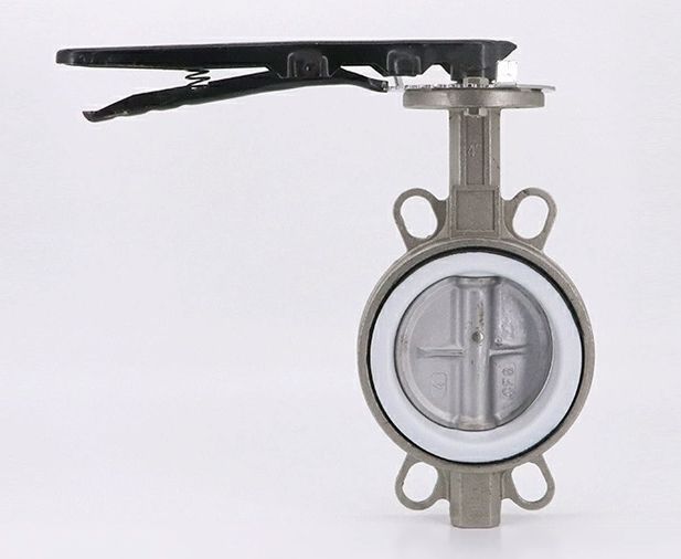 不锈钢对夹式四氟蝶阀特点如下:结构简单、小巧轻便,运输、安装、拆卸容易;90°启闭,开关迅速。操作扭矩小,省力轻巧;密封性能好,使用寿命长,可达到零泄漏;选择不同的零部件材质,可适用于多种介质;流置特性近似于直线,调节性能好。
