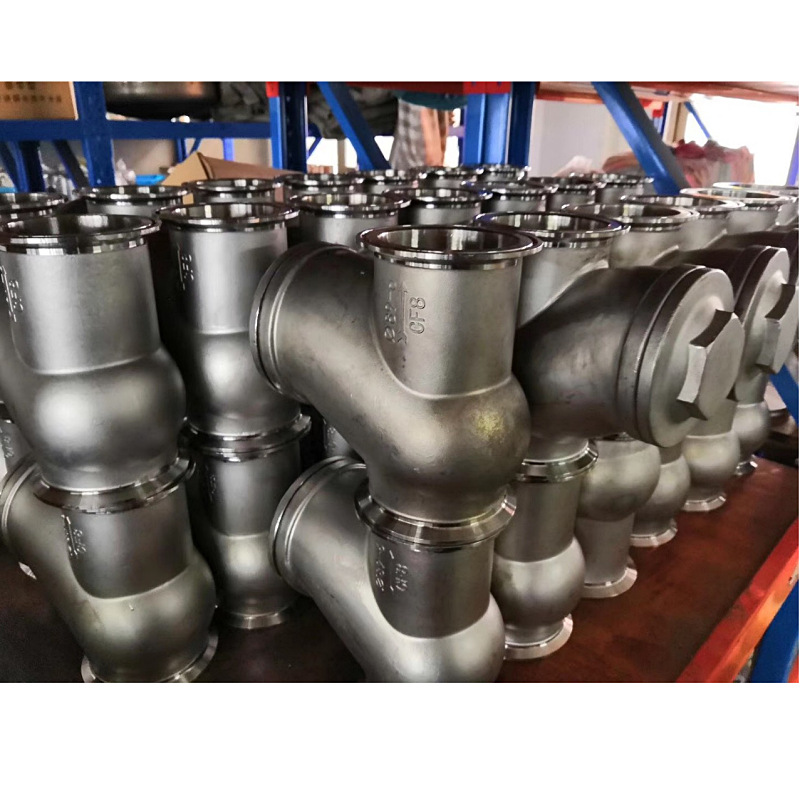 卡箍式球型止回阀,在介质的作用下,可在阀体内的整体式滑上作上下滚动,从而打开或关闭阀门,密封性能好,消声式关闭,不产生水锤。阀体采用全水流通道,流量大,阻力小,水头损矢比旋启式小50%,水平或垂直安装均可,可用于冷水,热水,工业及生活污水管网,更适合潜水排污泵。