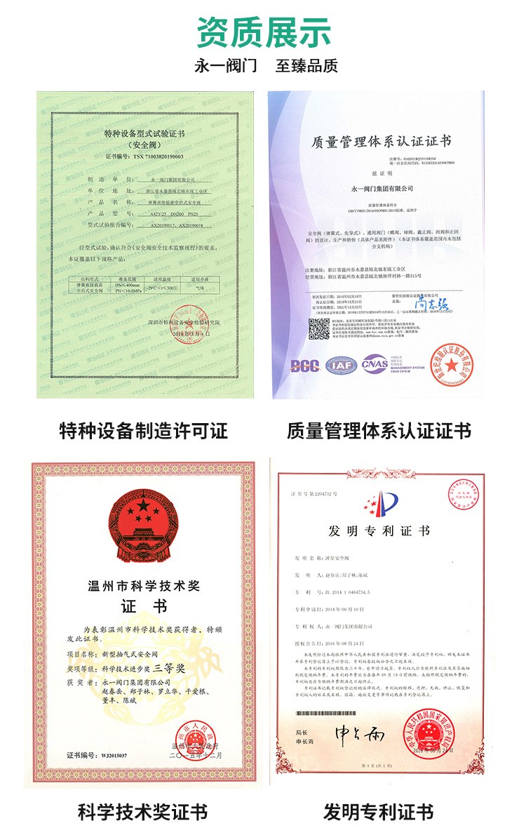 永一阀门集团有限公司组建于一九八四年。工业园占地面积九万陆千平方米,注册资金壹亿零壹拾捌万元,2021年安全阀产量25万台套。公司拥有现代智能加工中心、(机器人)桁架机械手、数控机床、普通机床等专用设备500多台套,并有最大加工直径3.5米的特大型立式车床。拥有金属材料理化试验、机械性能力学试验、超声波测厚、无损探伤、光谱分析、金属热处理、安全阀全性能测试中心、弹簧拉压试验等专用设备。