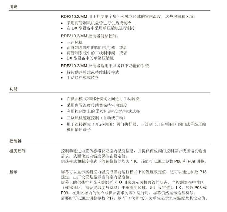 RDF310.2/MM 温控器适用于具备以下功能的系统: