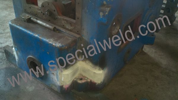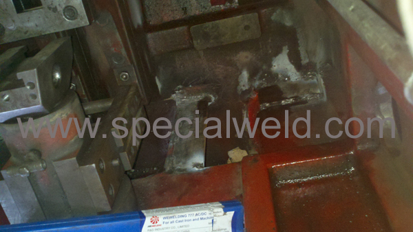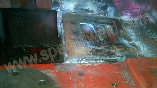 前言:关于WEWELDING777铸铁焊接的应用,在威欧丁焊接技术网铸铁专栏里已经做过很多不同类型的案例,此次拿一个很有代表性的粉末成型压机的铸铁机座焊接案例,是关于在大吨位的冲压机的受力部位加强板来加强的运用案例(机座因频繁受力将机座箱体拉裂),需要将裂纹做一个彻底的焊修复,然后利用厚度相当或略薄于受力部位铸铁的碳钢板来加强,我公司付出了艰辛的努力将其成功修复,期望能够与更多的压机厂家取得实质的合作事宜的机会!