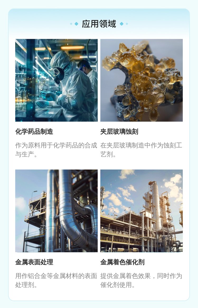 用途范围 | 化学药品、夹层玻璃蚀刻工艺剂 | ||