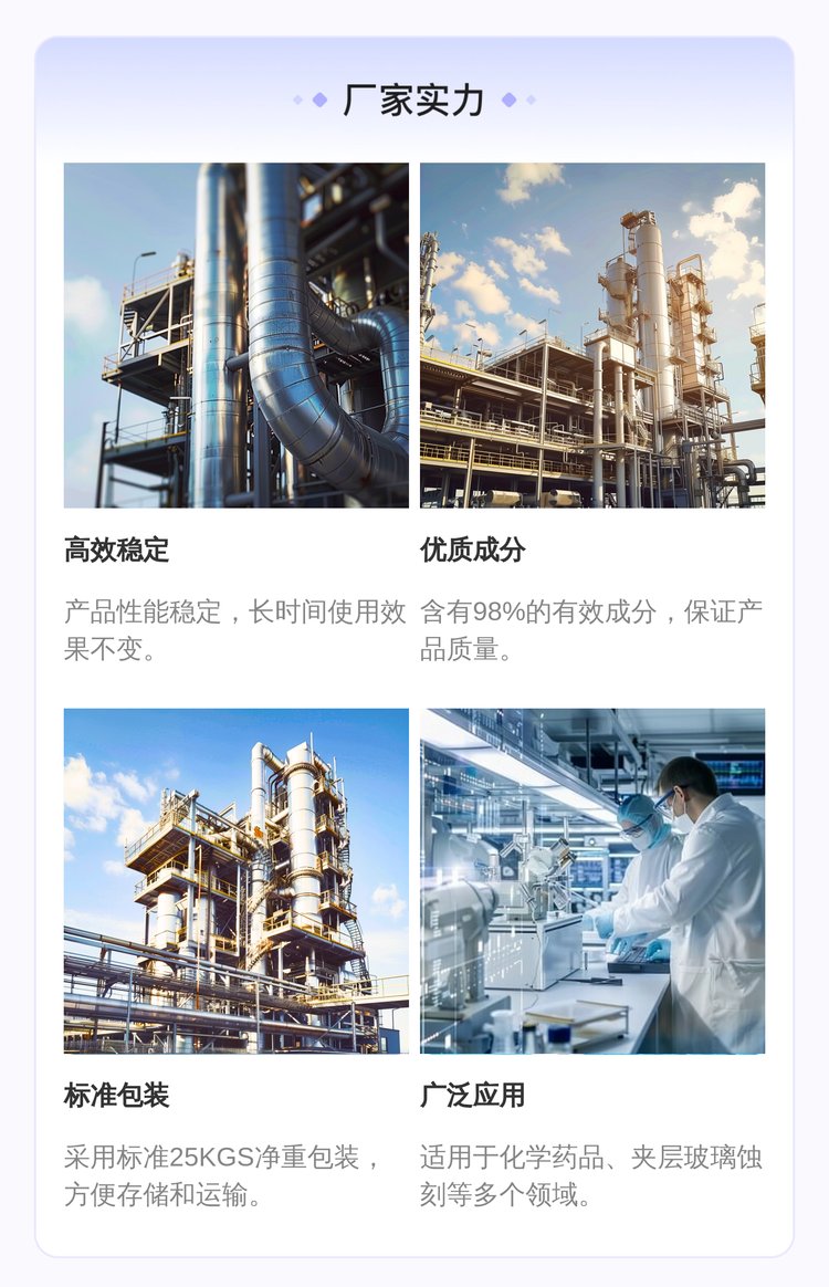 用途范围 | 化学药品、夹层玻璃蚀刻工艺剂 | ||
