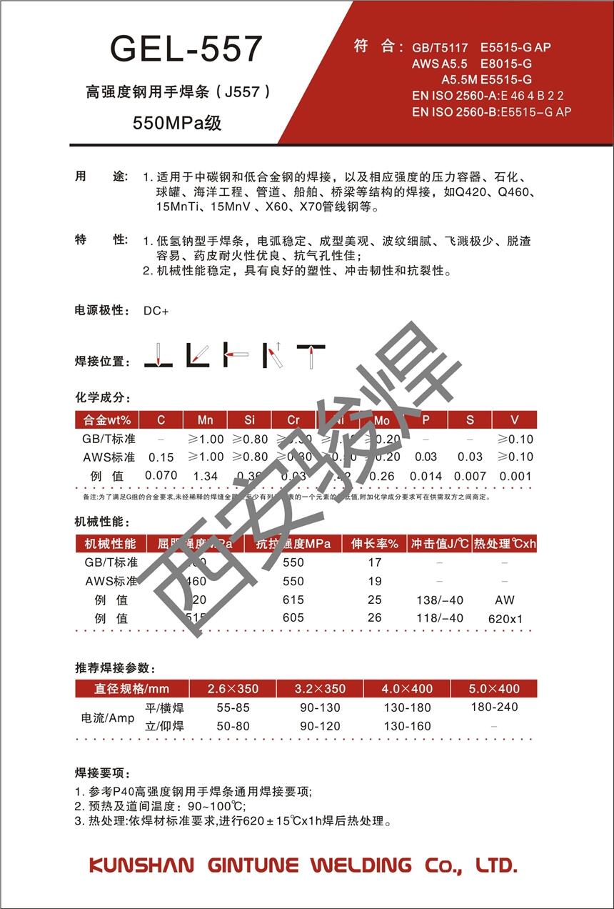 昆山京雷GEL-557焊条(J557)E8015-G高强度钢焊条E5515-G低合金焊条