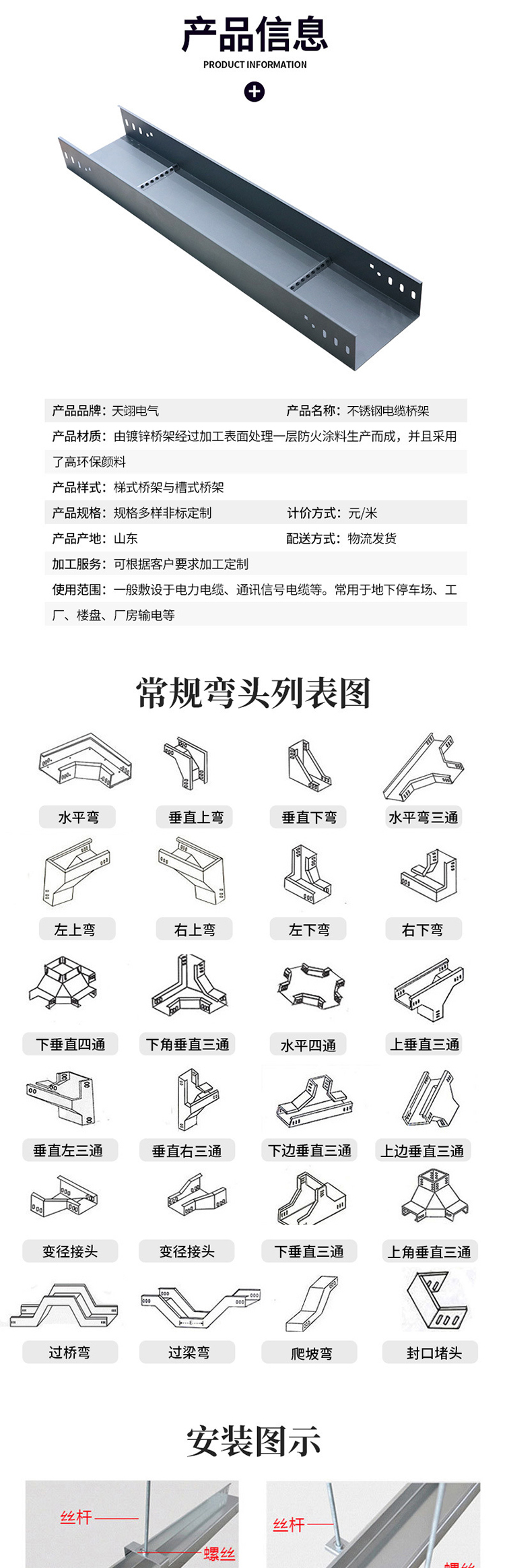 天翊不锈钢桥架400*150强电弱电桥架线槽阻燃防火喷塑