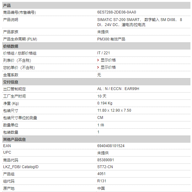• 规格:6ES7288-2DE16-0AA0