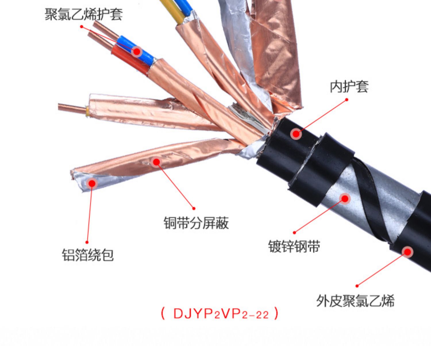 DJYP2VP2聚乙烯绝缘对绞组铜带分屏蔽及总屏蔽聚氯乙烯护套计算机电缆