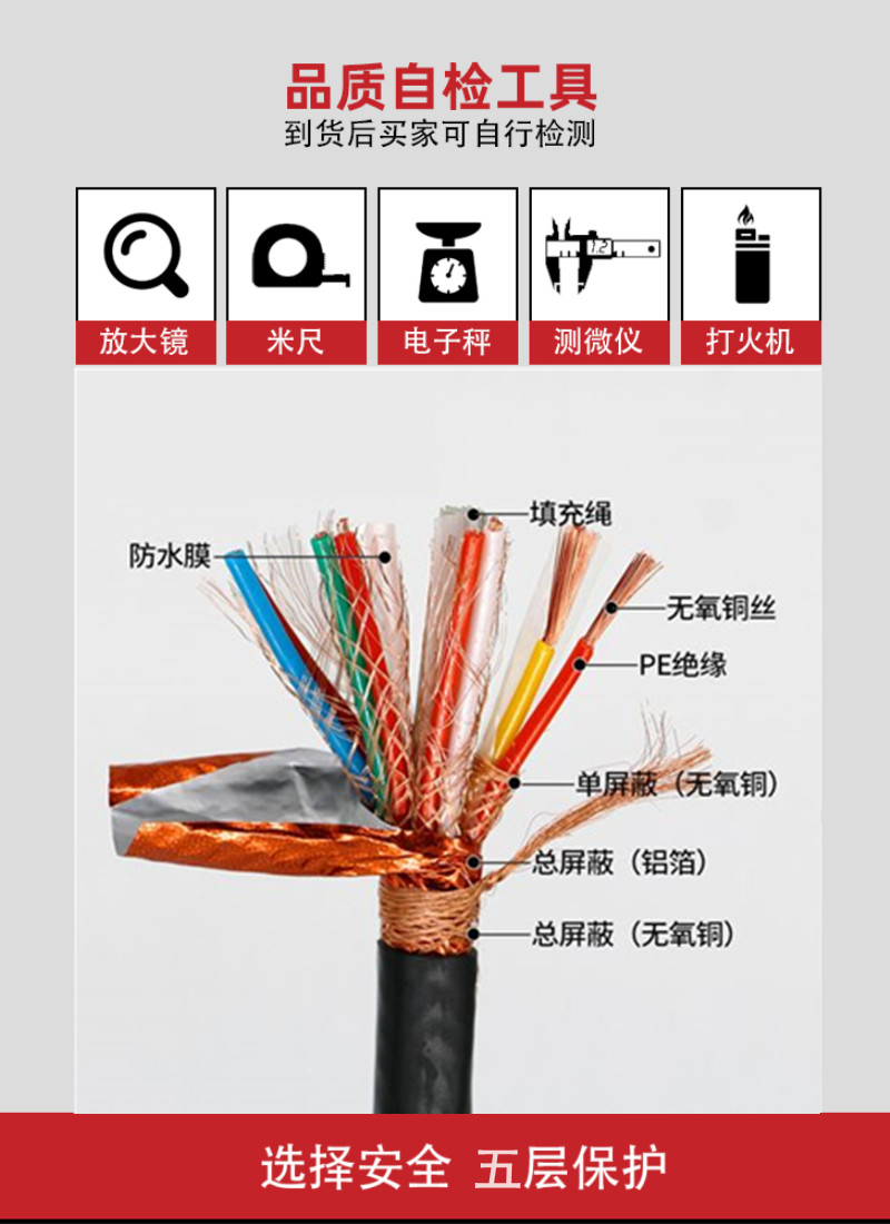 (3)截取一段绝缘层,看其线芯是否位于绝缘层的正中。不居中的是由于工艺不高而造成的偏芯现象,在使用时如果功率小还能相安无事,一旦用电量大,较薄一面很可能会被电流击穿。