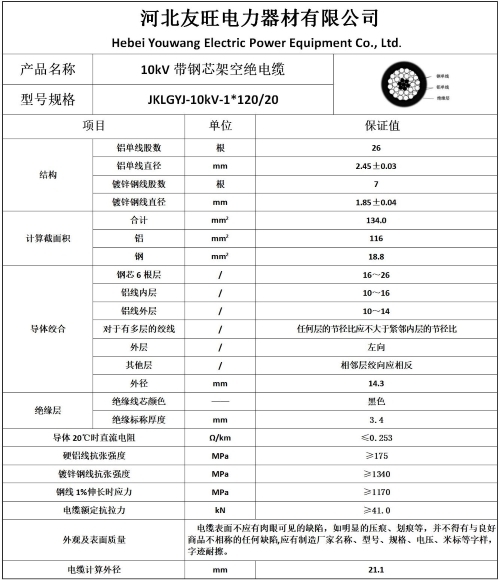 四、120/20国标10KV绝缘架空线生产厂家产品参数及样本图片: