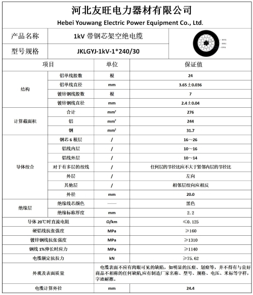 四、国标240/30绝缘架空线型号齐全直销价格产品参数及样本图片: