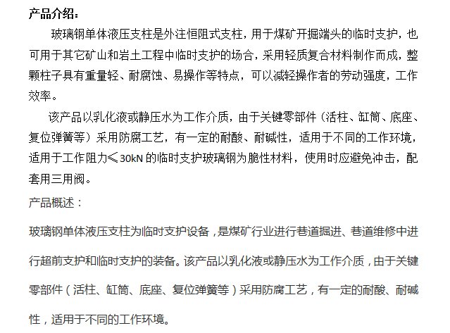 名称 | 临时支护用单体液压支柱 | ||