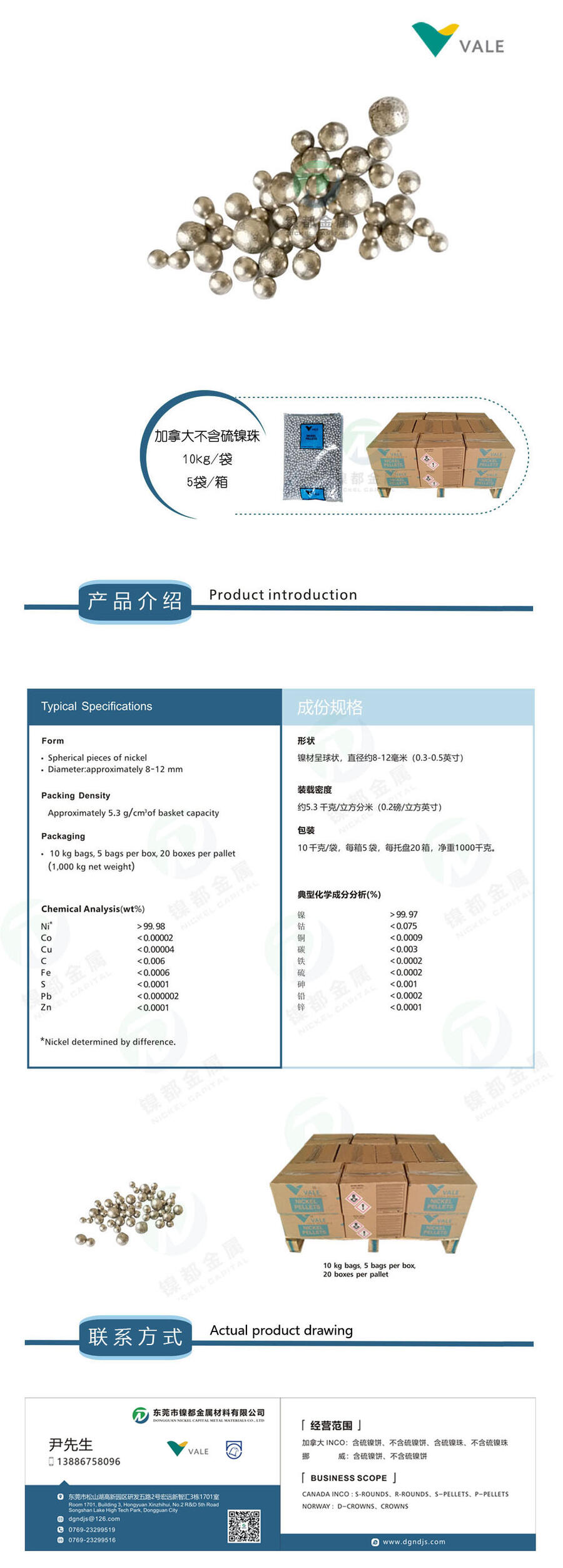 不含硫镍珠 英可不含硫镍珠,INCO不含硫镍珠,加拿大镍珠,英可镍球
