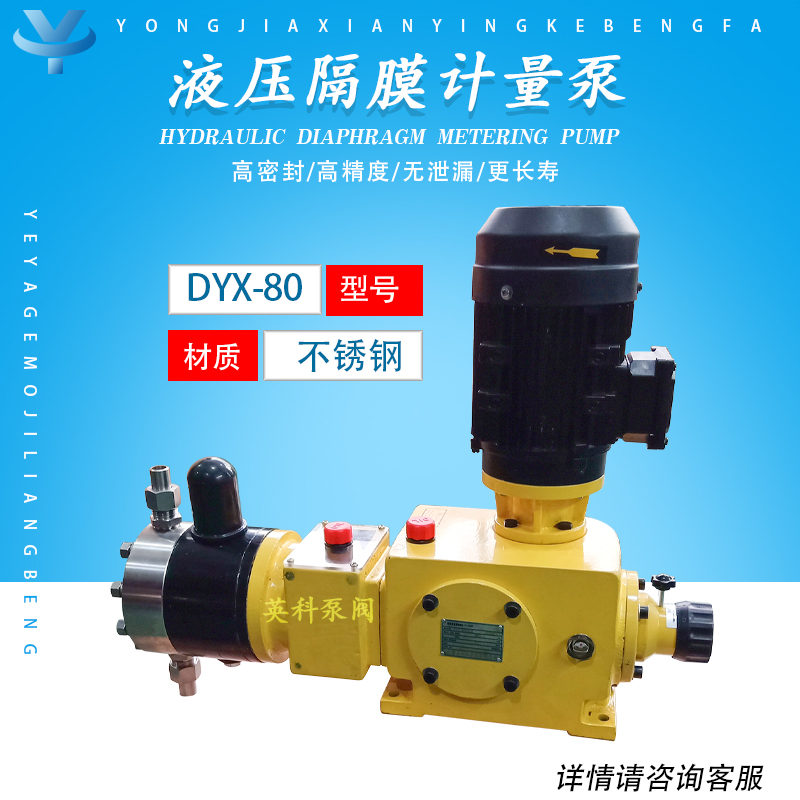 液压隔膜计量泵DY-X80/3.5不锈钢304变频防爆定量加药泵英科牌 功率 | 0.55KW | ||