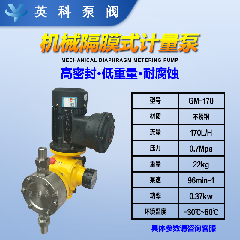 英科牌变频防爆不锈钢一体化污水站加药隔膜计量泵GM170/0.7 材质 | 工程塑料 | ||
