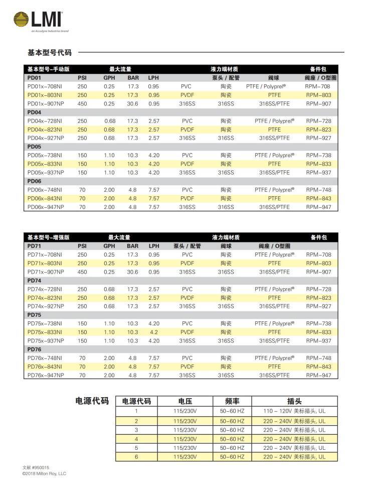 米顿罗LMI电磁隔膜计量泵PD056-738NI/PD056-833NI 产品特性 | 电磁泵 | ||