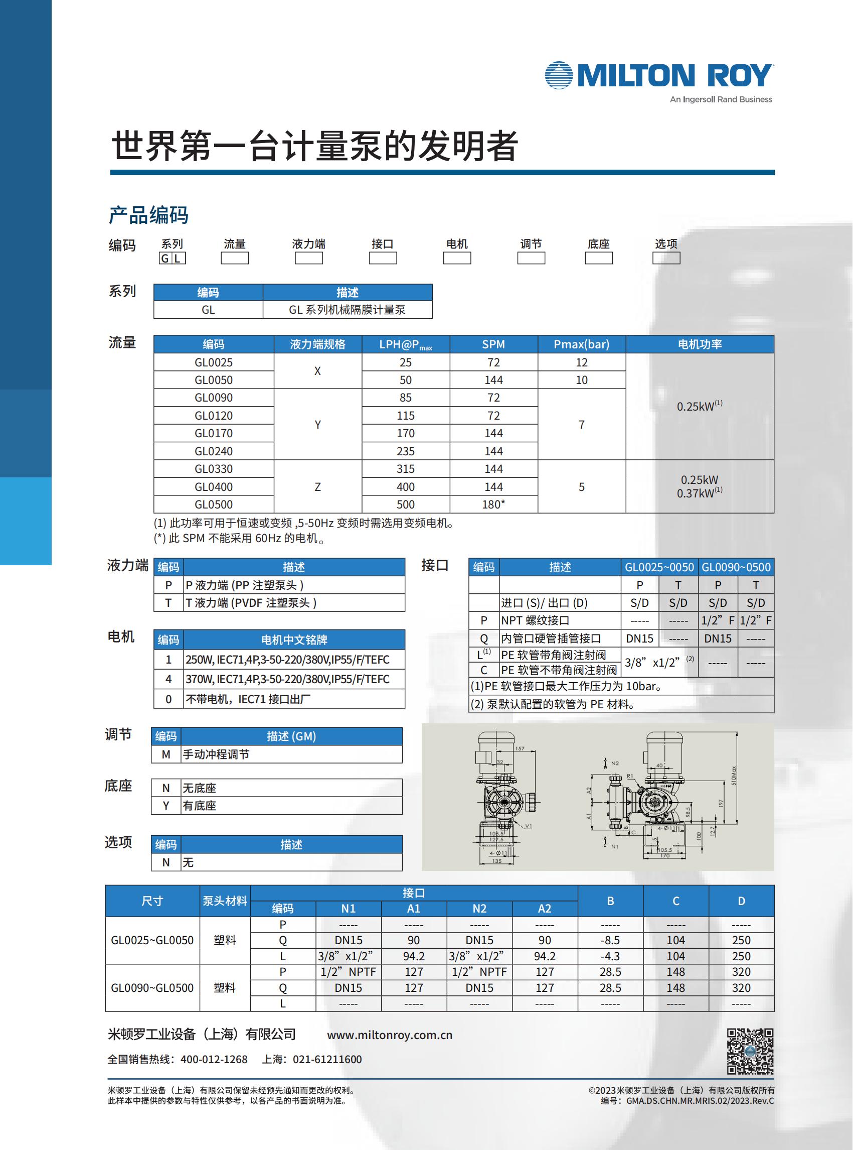 米顿罗加药计量泵GL0005PL1MNN/GL0005TL1MNN机械隔膜泵 是否支持加工定制 | 否 | ||