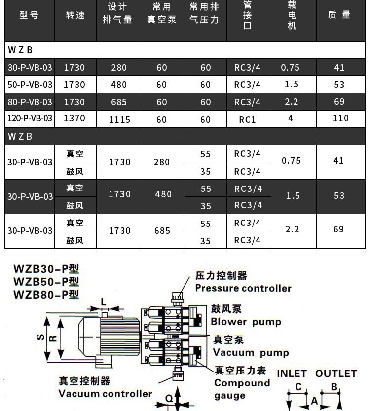 最大出口压力数值 | -86kPa | ||