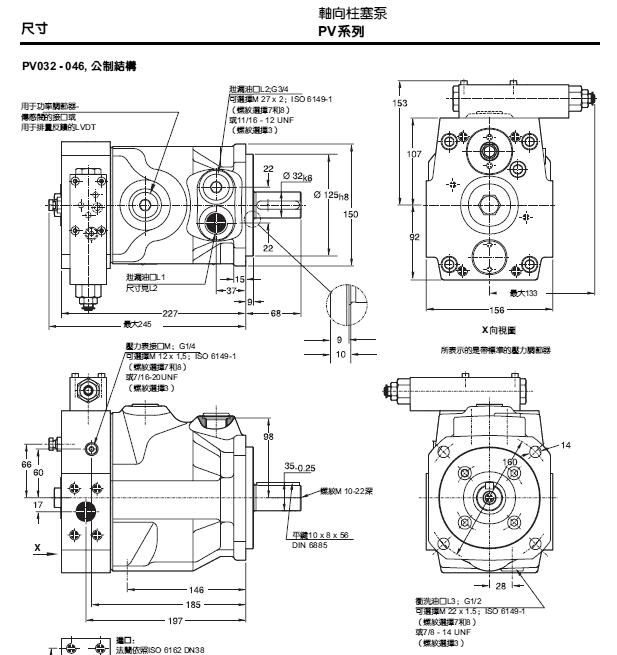 派克(Parker)PV系列泵文件资料,技术参数,连接方式,调节控制,结构图,安装尺寸