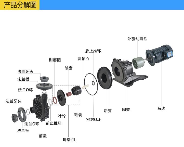 产品规格:(50/60Hz) 电机功率:0.4-3.75 KW 全流量:150-550 L/min 全扬程:12.5-37 m 主要材质:FRPP,PVDF 适合温度:0~75℃(FRPP),0~90℃(PVDF)
