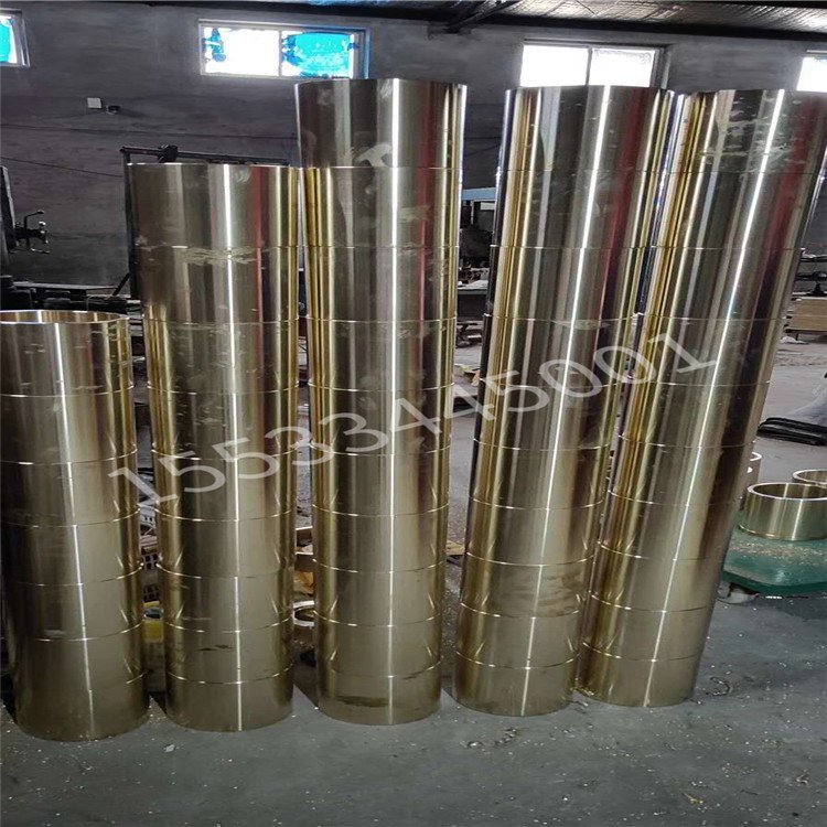 铜套,也称铜轴套,分为多种,包括机用铜辊、铜轴承等。用于各种轻工、大型、重型机械上,是机械上的重要组成件。产品具有传统的锡青铜轴承功能,以电解铜为原料配以多种微量金属元素,经高温烧结,通过气压离心铸造加工而成。硬度高,耐磨性极好,不易产生咬死现象,有较好的铸造性能和切削加工性能,在大气和淡水中有良好的耐蚀性。在缺乏润滑剂和用水质润滑剂条件下,滑动性和自润滑性能好,易切削,铸造性能差,对稀硫酸耐蚀性能好。一般用途的结构件,船舶、仪表等使用的外型简单的的铸件,如套筒、衬套、轴瓦、滑块等。