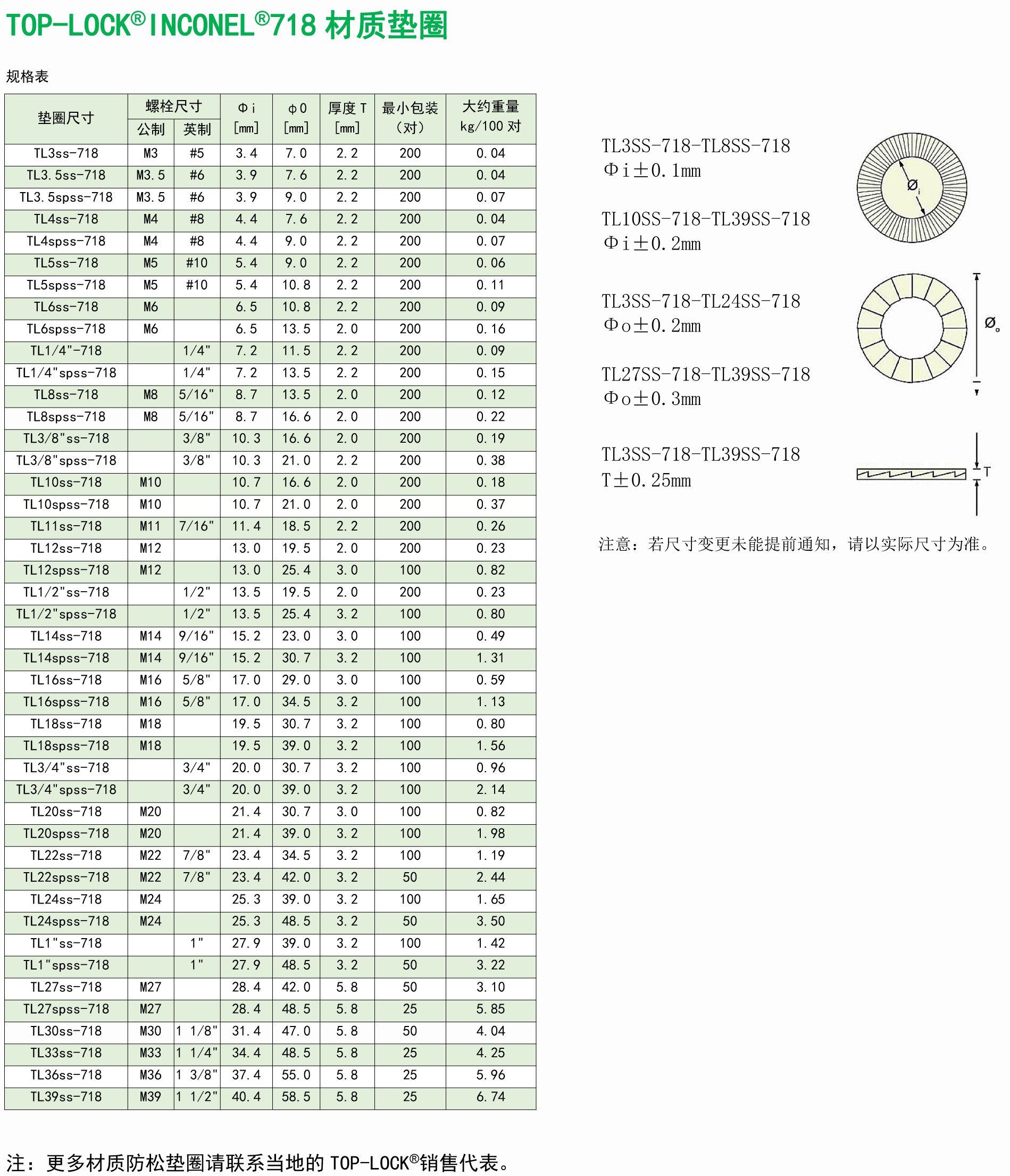 M3-TL1"ss防松垫圈 防松垫片 718/C-276材质(价格请致电咨询) 公称直径 | M3-M39 | ||
