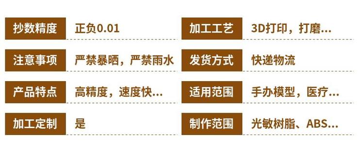 制作范围 | 光敏树脂、ABS | ||