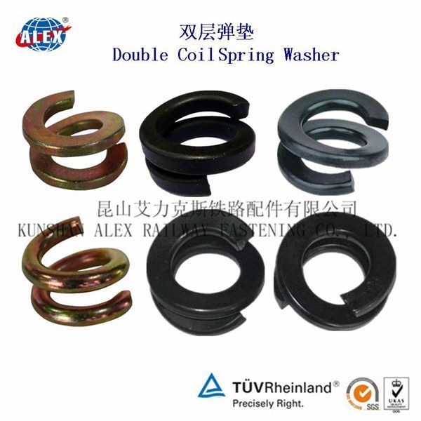 2、防松垫圈是一种防止螺栓松动的垫圈。防松垫圈的工作原理非常简单。它由两片垫圈组成。外侧是带有放射状凸纹面,而内侧为斜齿面。当装配时,内侧斜齿面间相对,外侧放射状 凸纹面与两端接触面成咬合状态,当连接件受到振动,并使螺栓发生松动趋势 时,仅仅允许两片垫圈内侧斜齿面间相对错动,产生抬升张力,从而达到 的锁紧。弹簧垫圈在螺丝行业,常叫为弹垫。它的材质有不锈钢的和碳钢的,碳钢的也就是铁的。一般常用的弹簧垫圈规格尺寸有M3,M4,M5,M6,M8,M10.M12,M14,M16.这些规格比较常用。