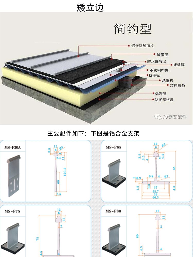 铝镁锰板屋面支座T码 彩钢瓦400/430型屋面支架铝合金暗扣隔热垫 用途 | 固定件 | ||