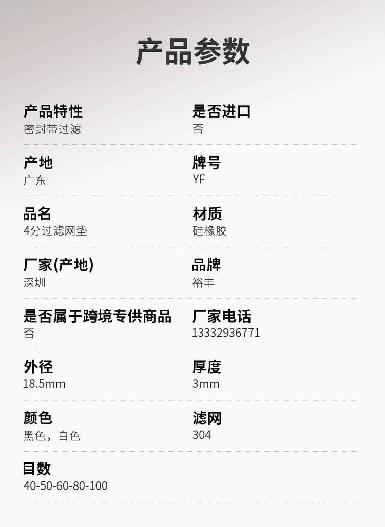 品名 | 4分过滤网垫 | ||