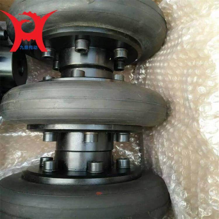 ? ? ?轮胎联轴器轮胎体是轮胎联轴器必要的备件之一,相应的分为UL、LA、LB轮胎体。轮胎式联轴器分为凸型和凹型两大类,凸型又分为带骨架整体式、无骨整体式和径向切口式三种。轮胎环内侧用硫化方法与钢质骨架粘接成一体,骨架上的螺栓孔处焊有螺母。装配时用螺栓与两半联轴器的凸缘连接,依靠拧紧螺栓使轮胎与凸缘端面之间产生的摩擦力来传递转矩,轮胎环工作时发生扭转剪切变形,故轮胎联轴器具有很高的弹性,补偿两轴相对位移的能力较大,并有良好的阻尼,而且结构简单、不需润滑、装拆和维护都比较方便。其缺点是承载能力不高、外形尺寸较大,随着两轴相对扭转角的增加使轮胎外形扭歪,轴向尺寸略有减小,将在两轴上产生较大的附加轴向力,使轴承负载加大而降低寿命。轮胎联轴器高速运转时,轮胎外缘由于离心力的作用而向外扩张,将进一步增大附加轴向力。为此,在安装联轴器时应采取措施,使轮胎中的应力方向与工作时产生的应力方向相反,以抵消部分附加轴向力,达到改善联轴器和两轴承的工和条件。