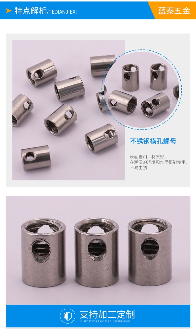 不锈钢非标螺母 304横孔螺母 304圆螺母 家具螺母 不锈钢套管