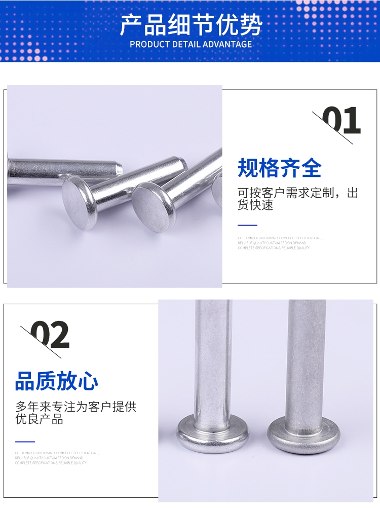 平头实心铝铆钉 纯铝轻型铝制汽车铝铆钉 铝合金铝梯子5052铝铆钉