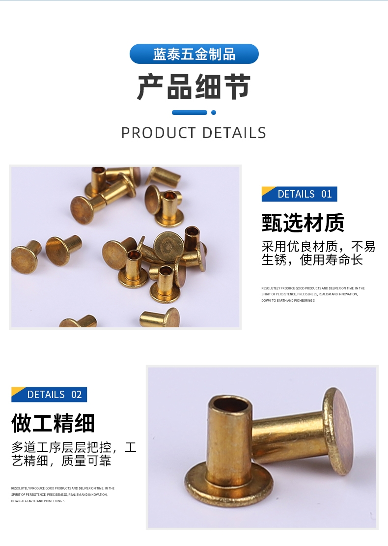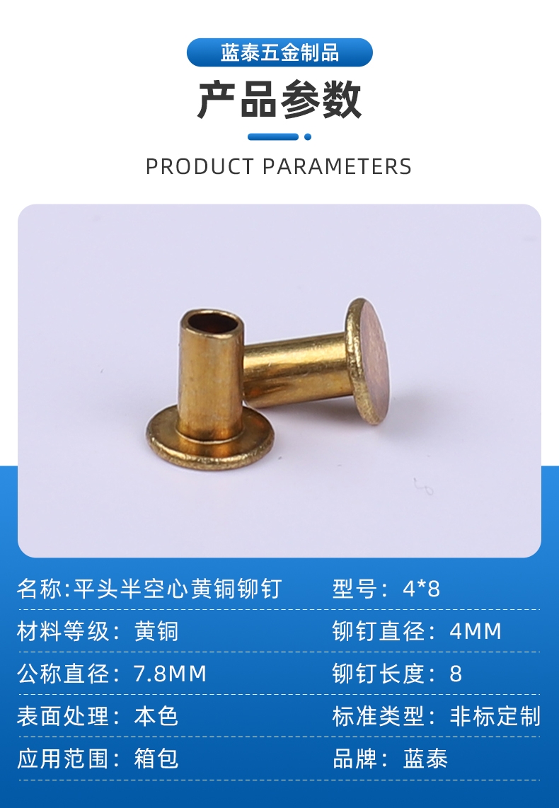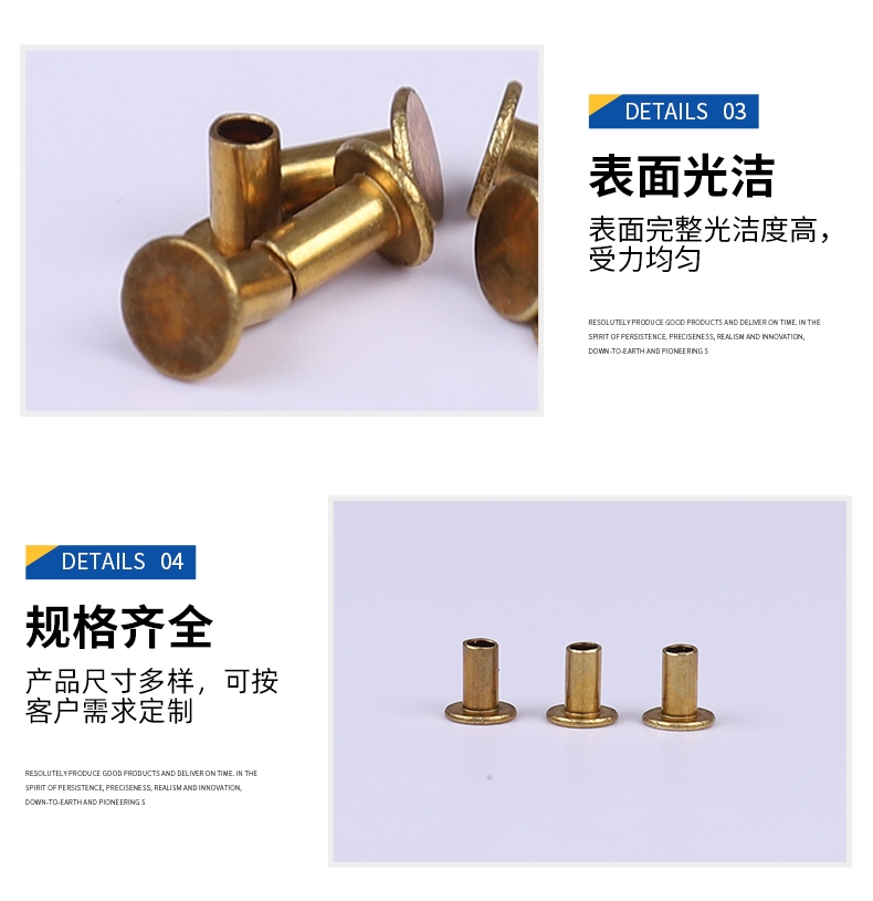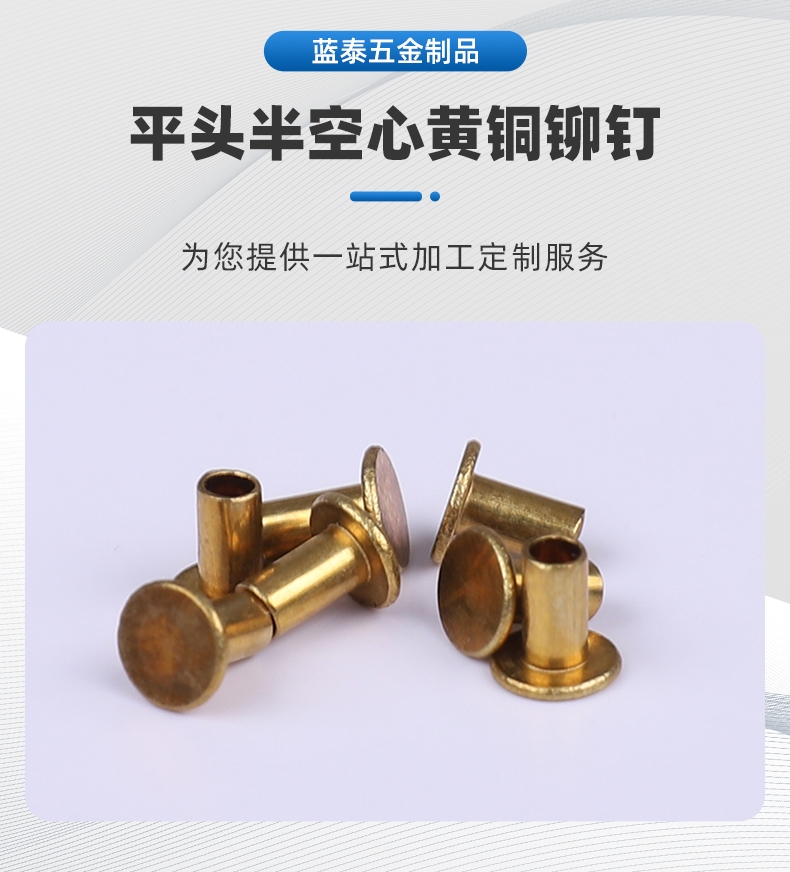扁平头半空心铜铆钉 平头半空心铜铆钉 GB875黄铜铆钉 离合器铆钉