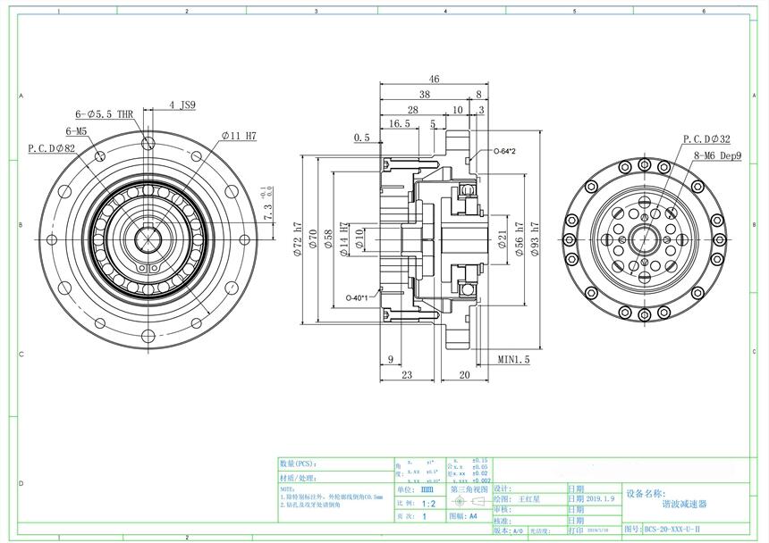 谐波减速机BCS14/17/20/25/32/40/45II型十字连接替代哈默纳科HD
