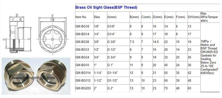 M10X1 M12X1.5 M12X1 减速机轴承箱黄铜油位镜GM-BM10