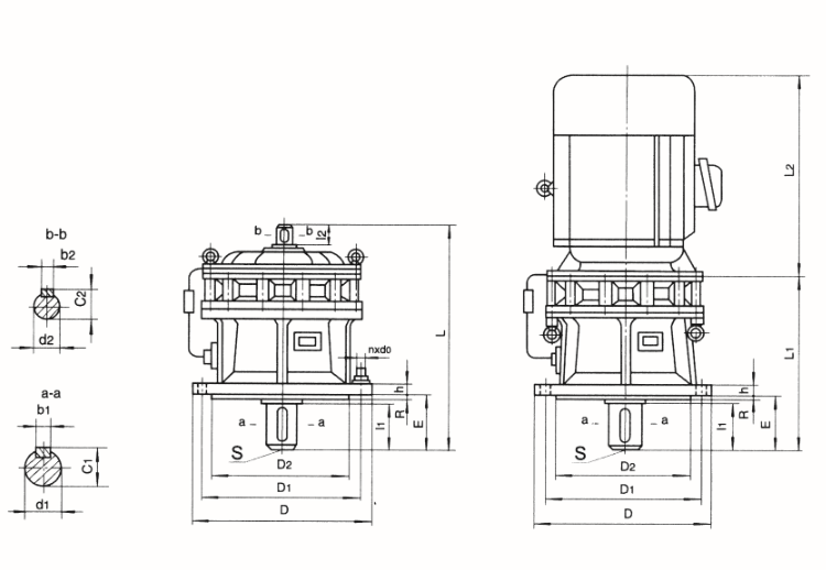 在摆线减速机的输出轴上加装联轴器、皮带轮、链轮等联结件时不允许采用直接捶击方法,因该减速机的输出轴结构不能承受轴向的捶击力,可用轴端螺孔旋入螺钉压入联结件。在基础上安装减速机时,应校准减速机的安装中心线标高,水平度及其相连部分的相关尺寸。校准装动轴的同心度不应超过联轴器所允许的范围。