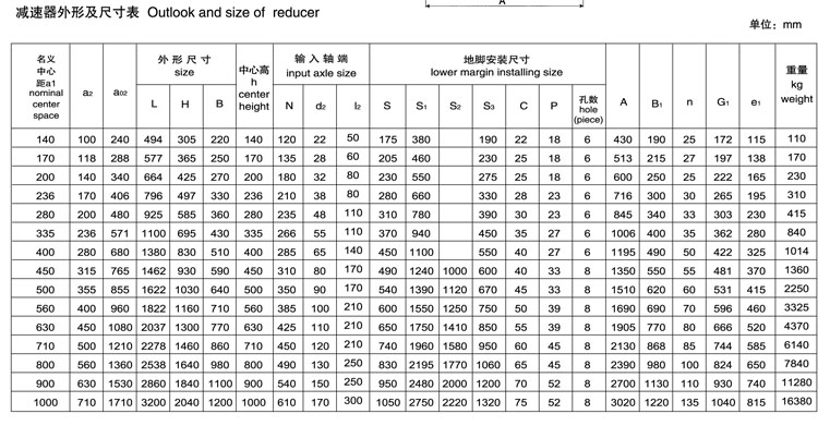 一、 减速机采用460#中负荷工业齿轮油,工作环境温度为0~40℃。