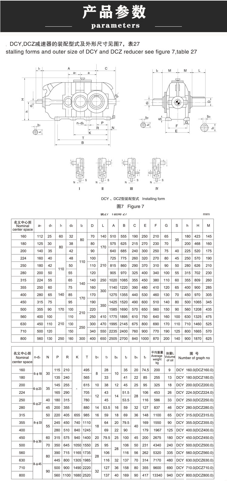 DCY280-40-IIIN硬齿面输送机减速机为完整型号,280为中心距,40为传动比,III为装配型式,N为旋转方向为逆时针,也指高速锥轴,锥齿轮的齿型旋向。