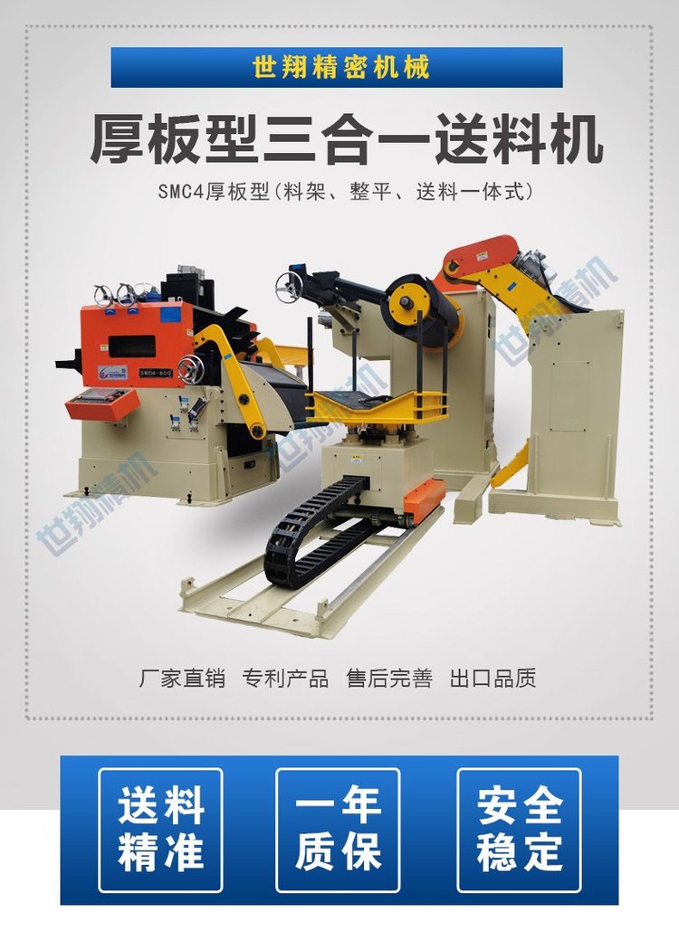 世翔不锈钢卷料5T/10T厚板三合一送料机脚轮五金冲压送料生产线 品牌 | 世翔精机 | ||