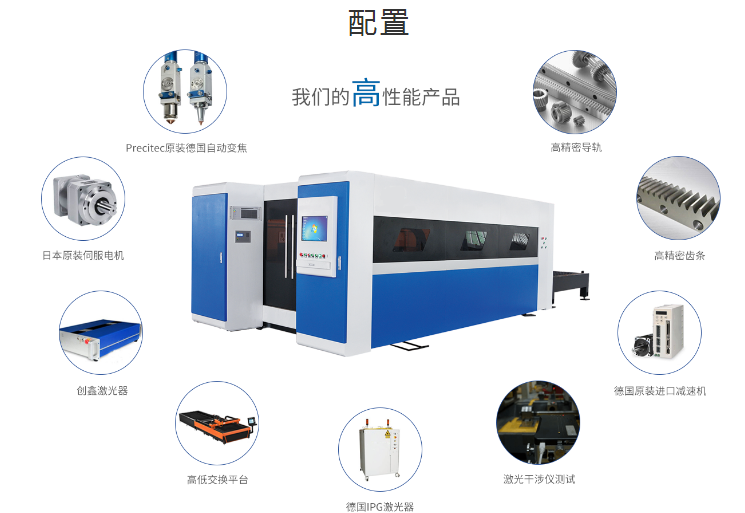 1、我们的8000W高功率激光切割机采用龙门式单边双驱结构,进口高精密减速机、齿轮齿条及直线导轨,传动平稳、加速度快、定位精度高。