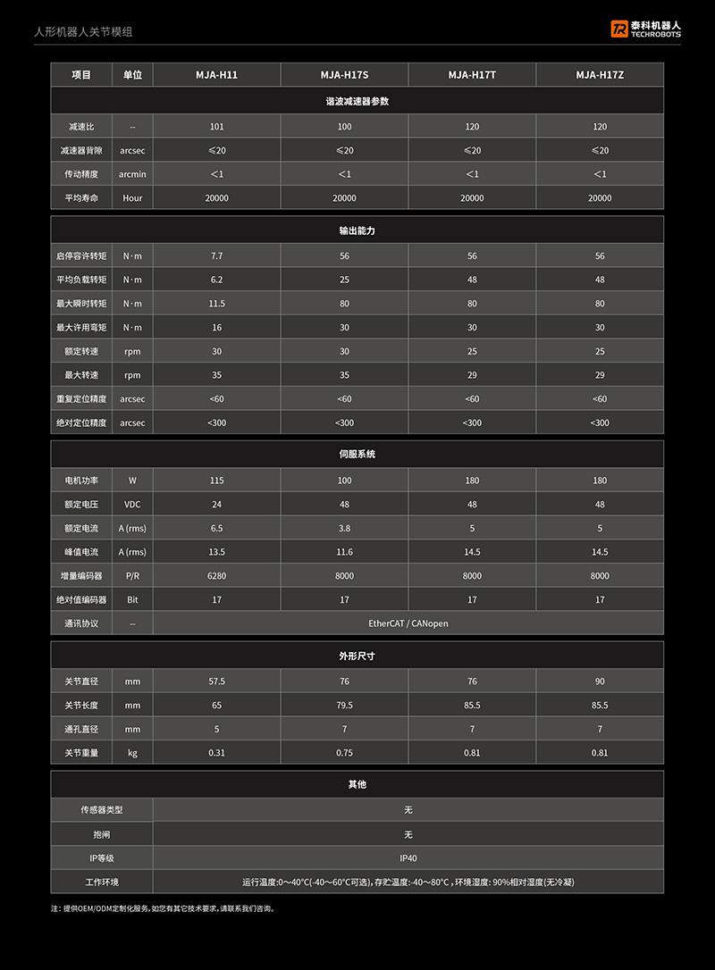 MJA-H系列轻量化人形机器人关节模组-多种规格-支持定制-源头厂家-泰科机器人