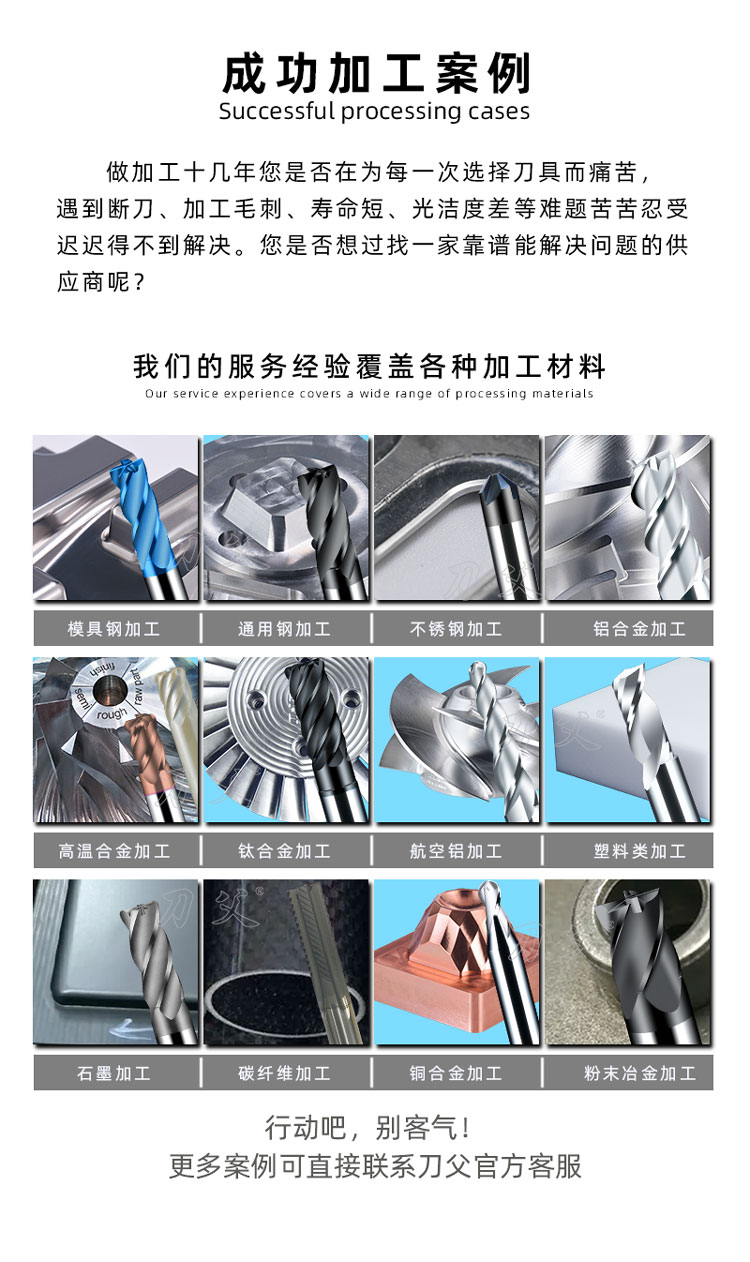 功能用途 | 52-65HRC模具淬火钢的精修仿形铣削加工 | ||