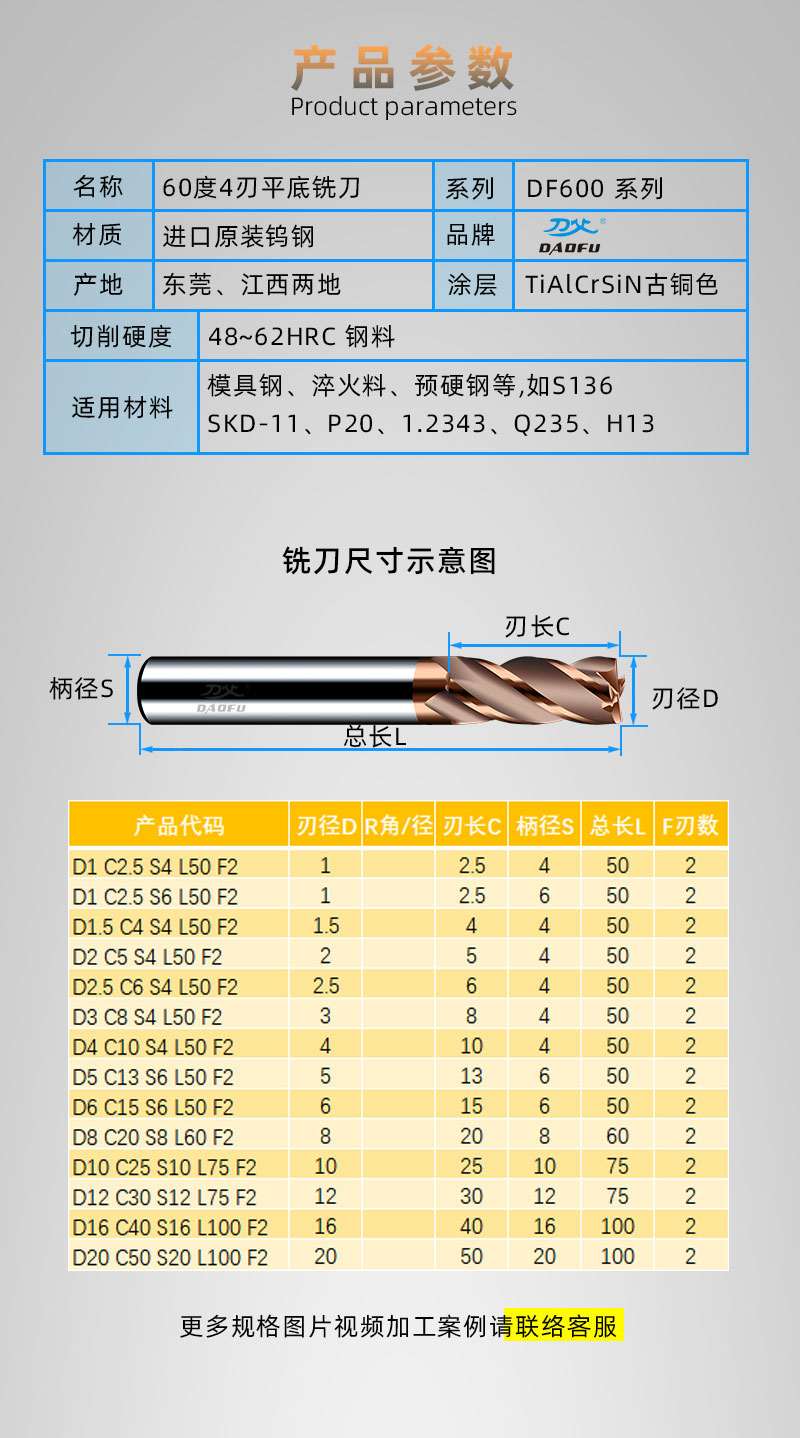 功能用途 | 立铣。侧铣。平铣、精修和开粗 | ||