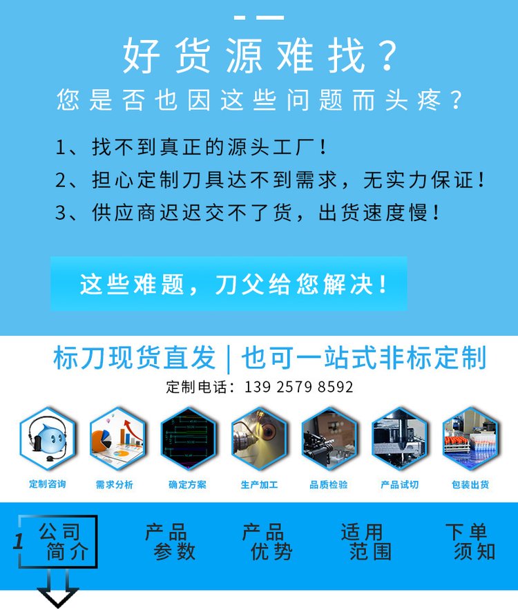 适用范围 | HRC20-55°不锈钢、铸铁、45#钢等专用铣刀 | ||